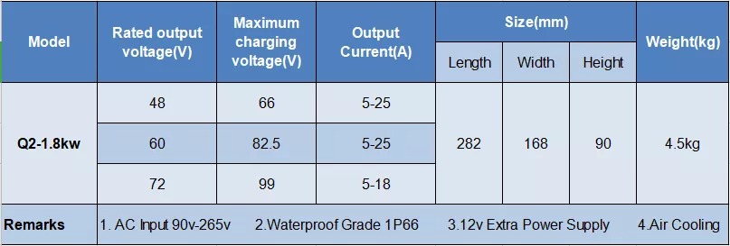 On Board 1.8KW EV Charger For Motorcycle TC CAN Protocol 48V 60V 72V 25A Deligreen Power TC Charger Waterproof Isolated